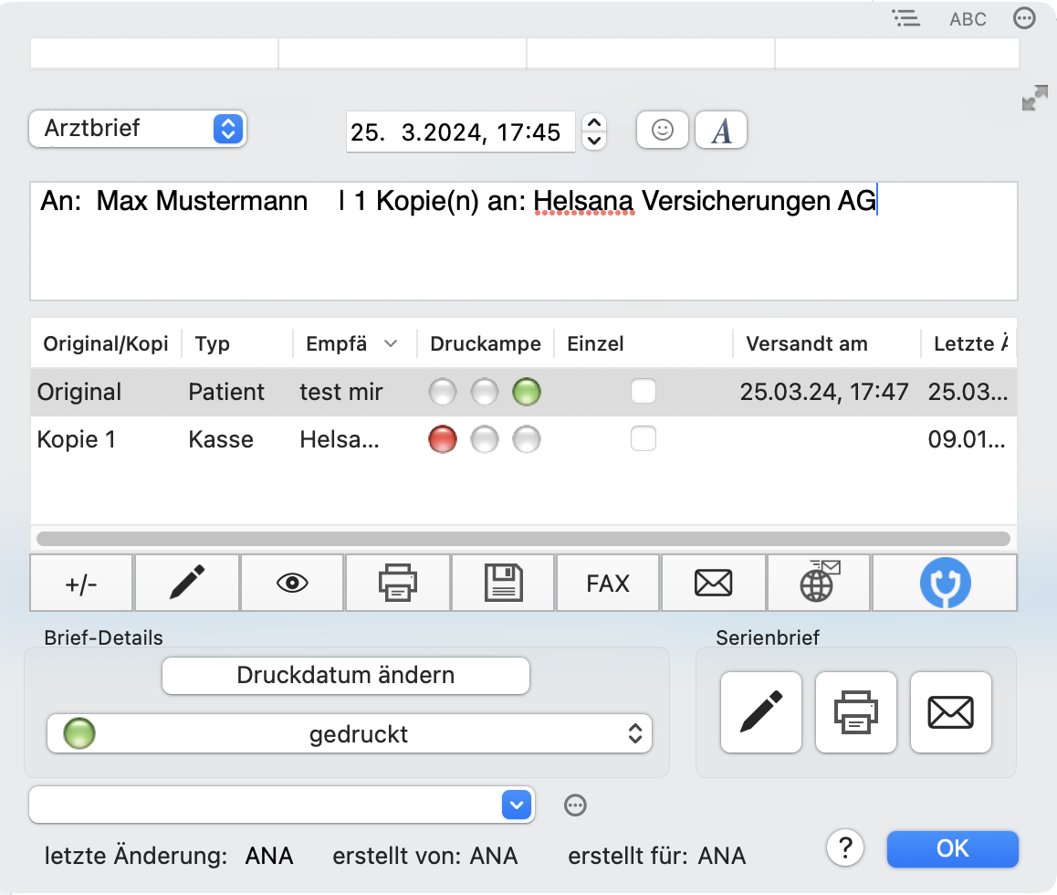 Brief-Popover im Dossier